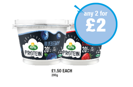 Arla Protein Yoghurt Blueberry, Strawberry - Any 2 for £2 at Premier