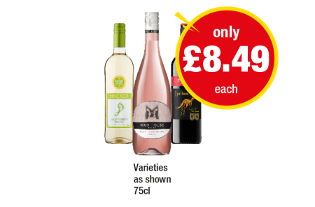 Barefoot Sauvignon Blanc, Mud House Rosé, Yellow Tail Jammy Red - Now Only £8.49 at Premier