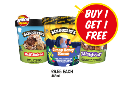 Ben & Jerry's Half Baked, Sunny Honey Home, Phish Food - Buy 1 Get 1 FREE at Premier