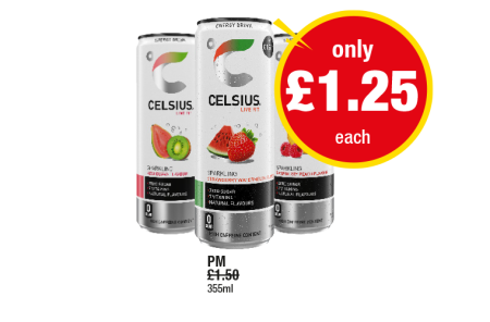 Celsius Sparkling Kiwi Guava, Strawberry, Raspberry Peach - Now Only £1.25 at Premier
