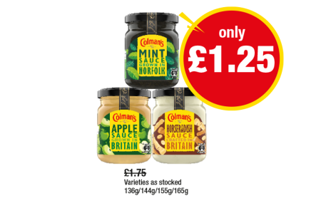 Colman's Mint Sauce, Apple, Horseradish - Now Only £1.25 at Premier