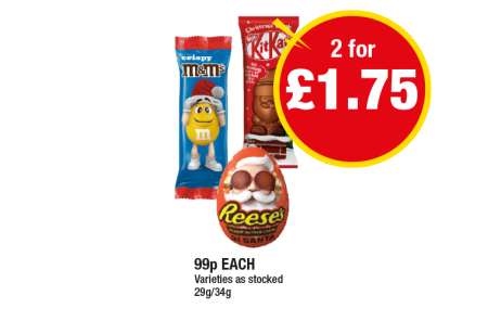 Crispy M&M's Bar, KitKat Bar, Reese's DJ Santa - Any 2 for £1.75 at Premier