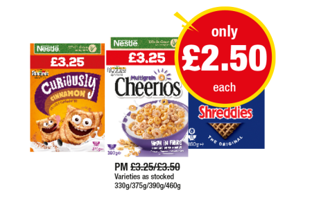 Curiously Cinnamon, Cheerios, Shreddies - Now Only £2.50 at Premier