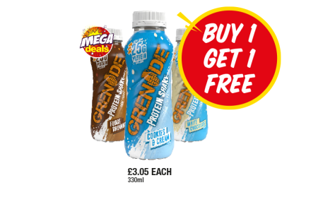 Grenade Protein Shake Fudge Brownie, Cookies & Cream, White Chocolate - Buy 1 Get 1 FREE at Premier
