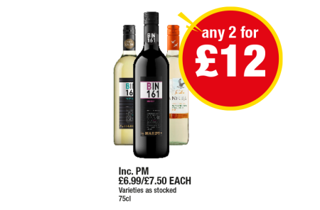 Hardy's Bin 161 Pinot Grigio, Merlot, Isla Negra - Any 2 for £12 at Premier