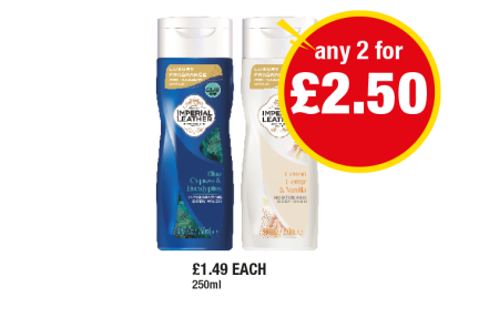 Imperial Leather Blue Cypress & Eucalyptus, Cotton Flower & Vanilla - Any 2 for £2.50 at Premier