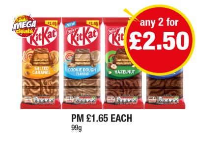 KitKat Salted Caramel, Cookie Dough, Hazelnut, Double Chocolate - Any 2 for £2.50 at Premier
