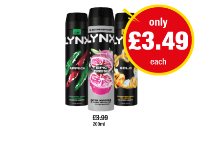 Lynx Africa, Epic Fresh, Gold - Any 2 for £3.49 at Premier