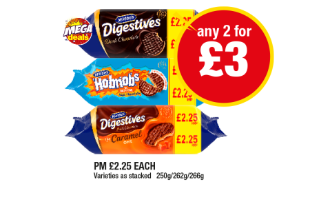 • McVities Digestives Dark Chocolate, Caramel, Hobnobs - Any 2 for £3 at Premier