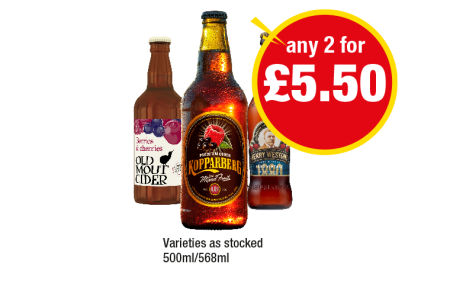 Old Mout Cider, Kopparberg, Henry Westons - Any 2 for £5.50 at Premier