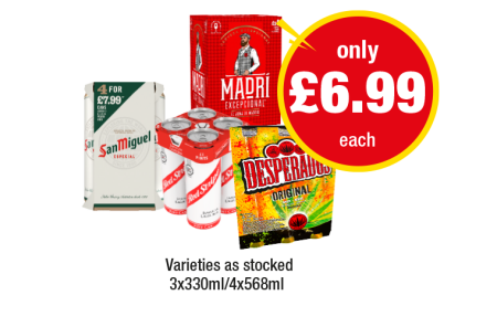 San Miguel, Madri, Red Stripe, Desperados - Now Only £6.99 at Premier