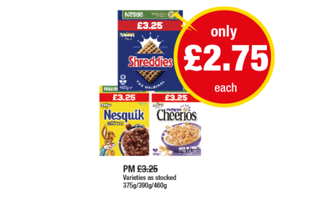 Shreddies Original, Nesquick, Cheerios - Now Only £2.75 at Premier