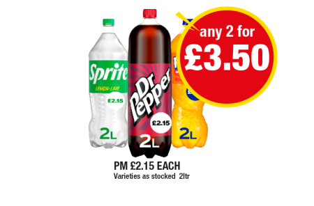 Sprite, Dr Pepper, Fanta Orange - Any 2 for £3.50 at Premier