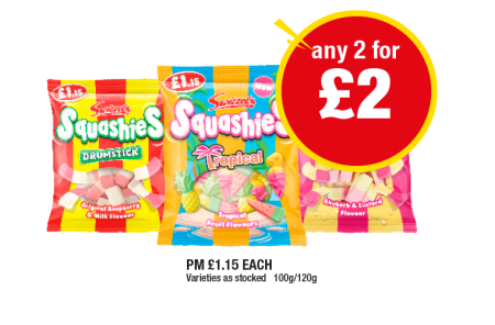 Squashies Drumstick, Tropical, Rhubarb & Custard - Any 2 for £2 at Premier