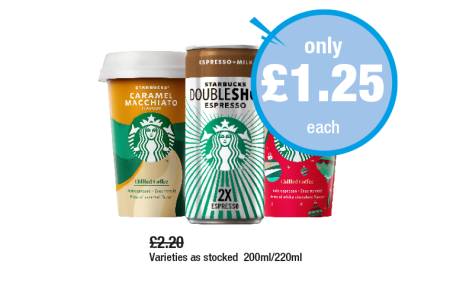 Starbucks Caramel Macchiato, Doubleshot Espresso, White Chocolate Mocha - Now Only £1.25 at Premier