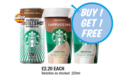 Starbucks Doubleshot, Cappuccino, Skinny Latte No Added Sugar - Now Only Buy 1 Get 1 FREE at Premier