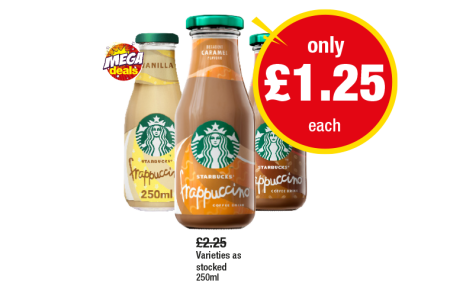 Starbucks Frappuccino Vanilla, Caramel, Creamy Coffee - Now Only £1.25 at Premier