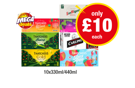 • Thatchers Blood Orange, Haze, Gold, Apple & Blackcurrant, Juicy Apple, San Miguel, Carling - Now Only £10 at Premier
