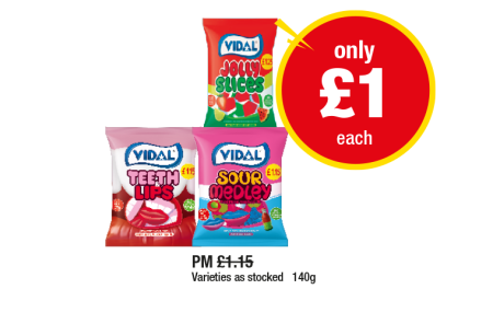 Vidal Jolly Slices, Teeth Lips, Sour Medley - Now Only £1 at Premier