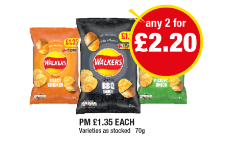 Walkers Roast Chicken, BBQ Sauce, Pickled Onion - Any 2 for £2.20 at Premier