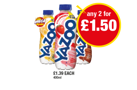 Yazoo Banana, Strawberry, Chocolate - Any 2 for £1.50 at Premier